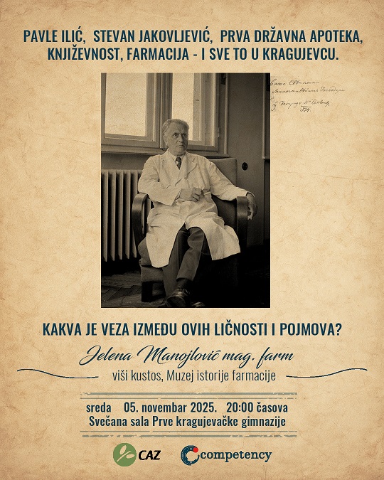 “Pavle Ilić, Stevan Jakovljević, prva državna apoteka, književnost, farmacija – i sve to u Kragujevcu. Kakva je veza između ovih ličnosti i pojmova?”